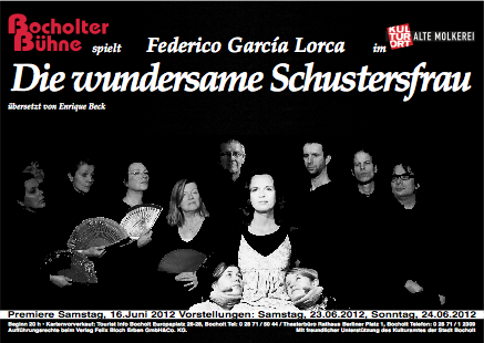 Auch wenn die Geschichte, die Lorca, einer der bedeutensten spanischen Dichter des 20. Jahrhunderts, erzählt, durchaus vorhersehbar ist, so fasziniert sie doch durch die Wechselbäder der Gefühle, die die einzelnen Charaktere durchlaufen. Ralf Melzow inszenierte das Stück für die Bocholter Bühne mit interessanten Sideplays.