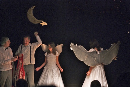 Zimtsternen gestattet - was sich nach wissenschaftlichen Erkenntnissen  euphoriesteigernd und auf das Publikum übertragend auswirkt. Das Publikum  selbst ist angehalten und aufgefordert, selbst Sterne und Kostüme  mitzubringen, die dem Rahmen der "Weihnachtsgeschichte" entsprechen.  Schließlich spielen die drei ausgewachsenen Männer nicht nur alles dem  Publikum vor: Schafe, Engel, Geburt, Soldaten und all das was die Bibel herzugeben hat, sondern auch das Publikum selbst verwandelt sich....