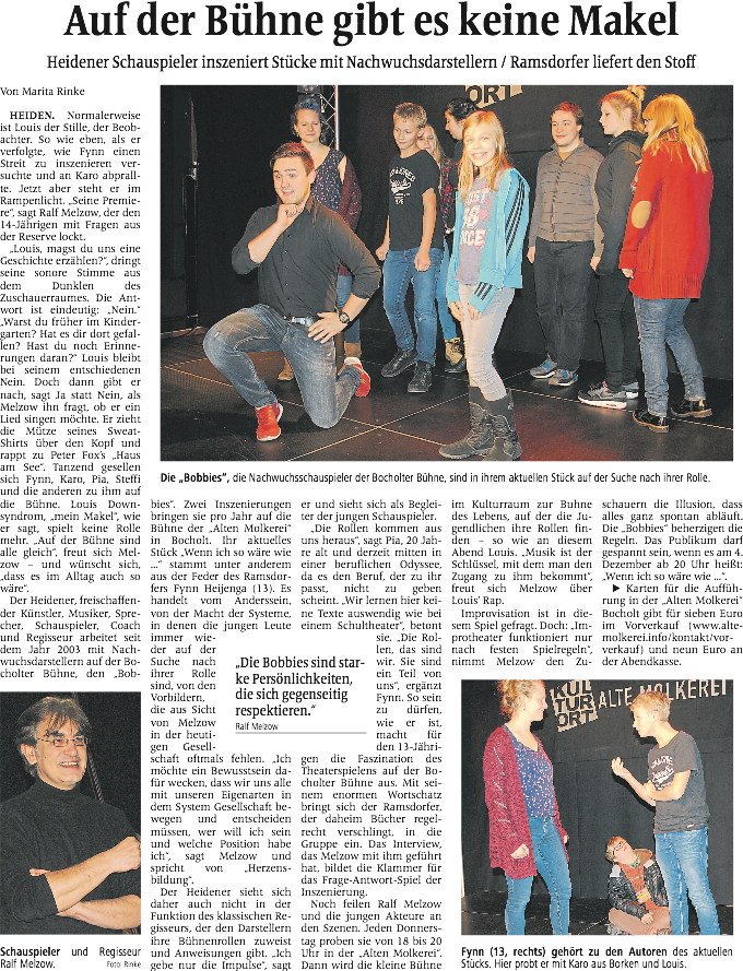 „Der Drache in mir“ haben sich die Bobbies neu gefunden und arbeiten seither auch mit den „Anderen“, die unterschiedlichste individuelle Besonderheiten mit sich bringen. Schon in diesem Projekt des Jahres 2014 entdeckten die Jugendlichen, welche Unterschiedlichkeiten jede/-r von ihnen mitbringt und haben sich auf die Suche nach dem Alltag von eingeschränkten und nicht eingeschränkten Jugendlichen begeben.